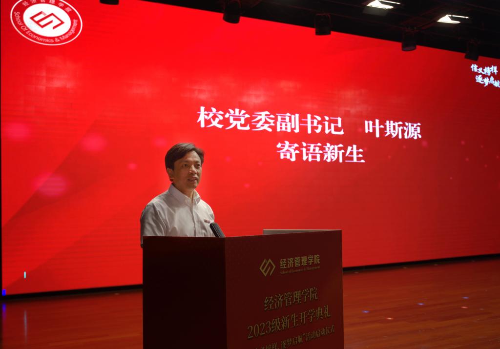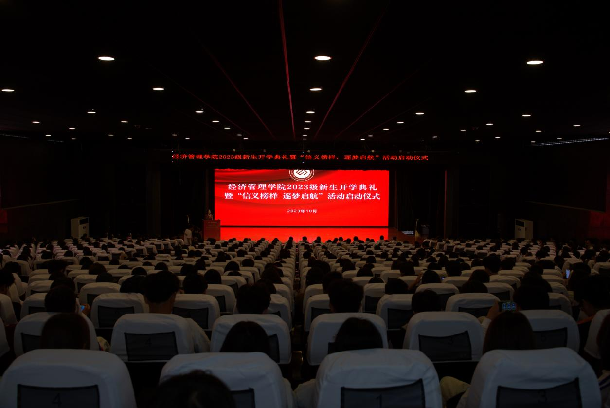 10月16日下午,必赢nn699net 2023级新生开学典礼暨“信义榜样、逐梦启航”启动仪式在丹溪文化厅举行。校党委副书记叶斯源、中国建设银行义乌分行副行长徐杨义、学院领导班子成员、专业负责人、新生班主任、教师代表以及学院2023级全体新生参加。