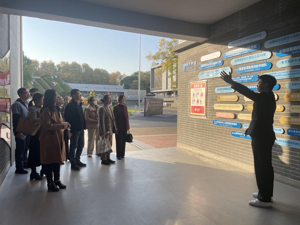 会后,浙江师范大学行知学院商学院院长麻勇爱一行在必赢nn699net负责人的陪同下参观考察了数字贸易实训基地、创意园等地。