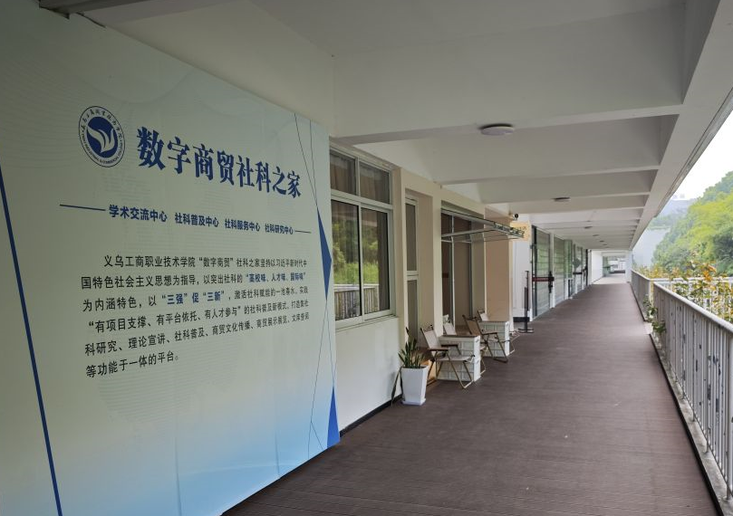 “数字商贸”社科之家位于校数字贸易实训基地,面积约4000平方米,包含商贸研究中心、商贸大讲堂、商贸直播间、商贸图书馆、商贸展示厅、社科信义广场和社科生活馆七大功能场所,构成多维度、深层次的社科研究与交流平台。该场地不仅是一个集社科研究、理论宣讲、社科普及于一体的综合性基地,更是商贸文化传播、商贸展示展览、文库资料查阅的重要窗口,展示了学校在推动社会科学与商贸实践深度融合方面的积极探索与显著成效。