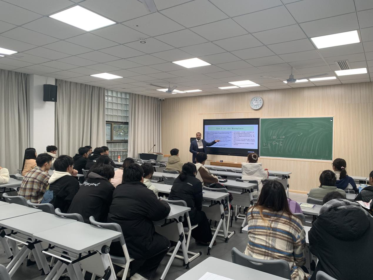 12月6日上午,必赢nn699net邀请外教Hazem Ahmed Ragab Ali博士在春晗楼304为师生开展了一场题为“职场中的Z世代:见解和建议”的英文主题讲座。