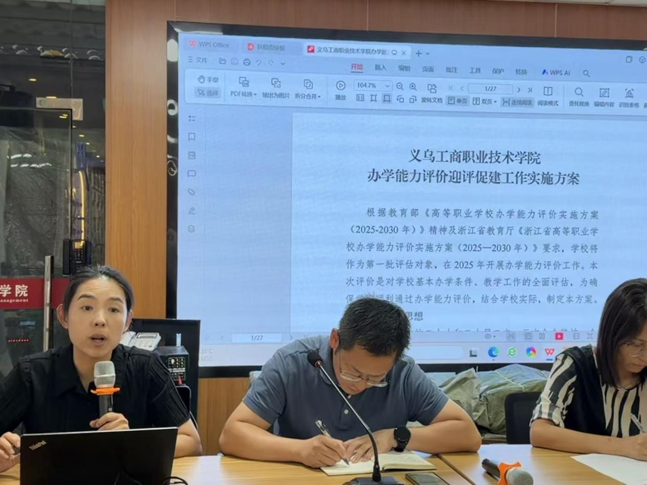 会上,学院教学工作负责人对《办学能力评价迎评促建工作实施方案》进行了解读,明确了迎评工作的具体要求与明确的时间节点,系统梳理了教育教学评估中的专业、课程、教材、师资、实训实习五个核心维度,要求各专业必须对标对表,将评估指标内化为常态化的建设标准。她指出,学院教师要以高度的责任感投入到迎评工作中,对照评估指标体系,迅速开展全面的自查自纠,梳理材料、查找短板、制定改进措施;严守评估体系重要观测点,确保在立德树人、教材选用、师德师风、实习实训安全等底线、红线问题上万无一失。