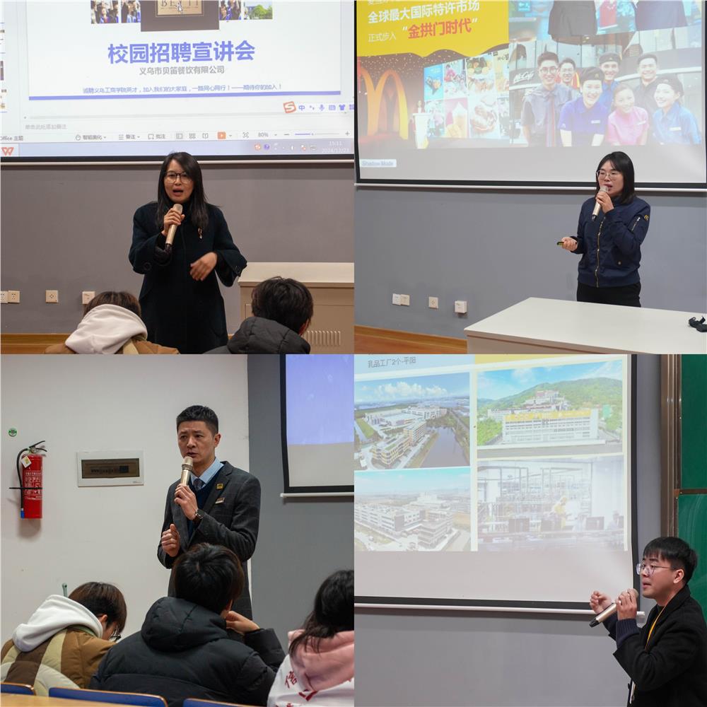 此外,必赢在阶梯教室二同步举办了企业宣讲会。浙江一鸣食品股份有限公司、杭州屈臣氏个人用品商店有限公司、中国人寿保险股份有限公司等9家企业进行了现场推介,详细介绍了公司情况、岗位需求、晋升路线、薪酬福利等,现场互动热烈。多名低年级学生也参与其中,表示通过宣讲会提前了解就业前景,有助于做好职业规划。