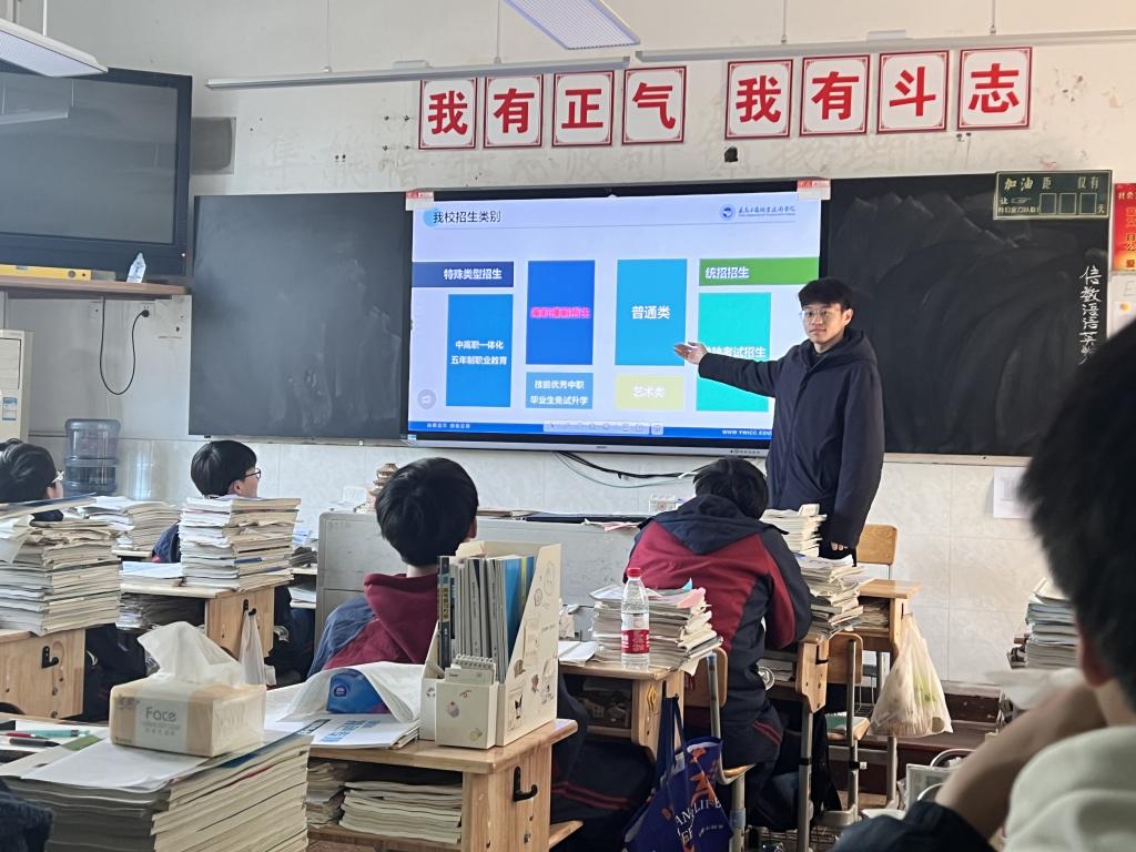 大数据与会计专业的王浙培在寒假参加“我为义乌工商代言”回访高中母校寒假实践活动,以学校招生宣传大使的新身份重返母校余姚二中,讲述他眼里的“义乌工商故事”。“我向学弟学妹们介绍了学校历史发展、校园文化、学科竞赛等几个方面,和他们探讨了未来规划、专业选择,帮助他们提前规划好自己的升学路线,在宣讲过程中还无意中吸引到其他班级学生的旁听与咨询,我觉得特别自豪!”
