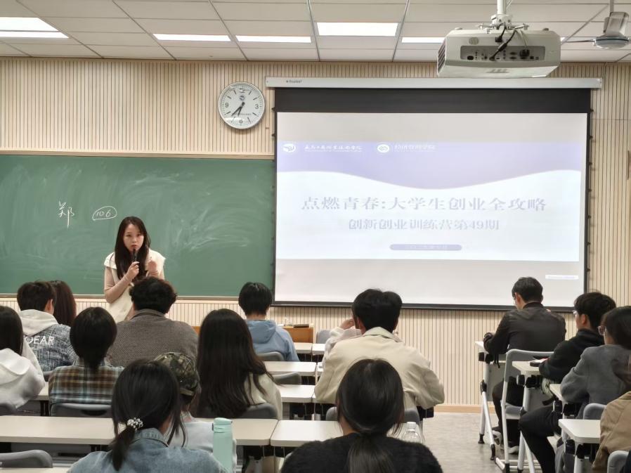 线上讲座结束后,学院组织各班级开展线下互动分享。学院负责创业辅导员围绕大学生创业认定标准、相关课程替代政策及创业平台使用等内容进行深入解读。