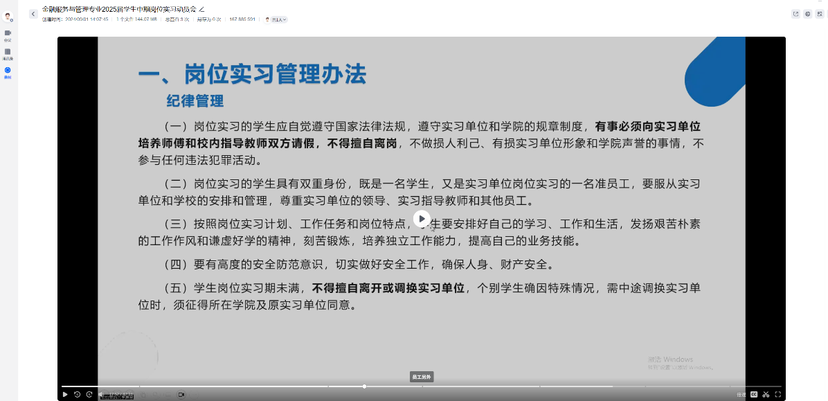 为进一步提高学生安全意识,9月1日,金融服务与管理专业组织召开2025届学生岗位实习动员及安全教育大会。