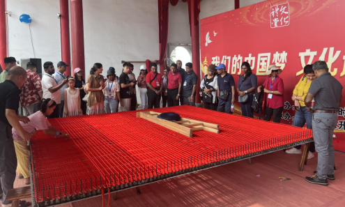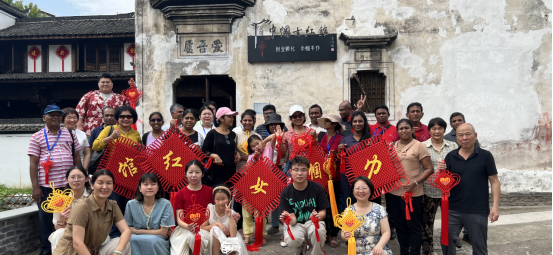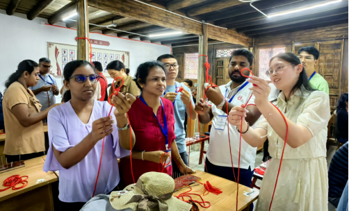 8月15日,我校必赢nn699net师生同浙江省巾帼共富工坊服务中心负责人在大陈中国女红馆接待了来自斯里兰卡的20多位学员,带他们近距离参观了巨型中国结的编织现场,了解直播+来料加工乡镇振兴项目的运营模式,同时与他们一起共同编织了国际友好同心结。