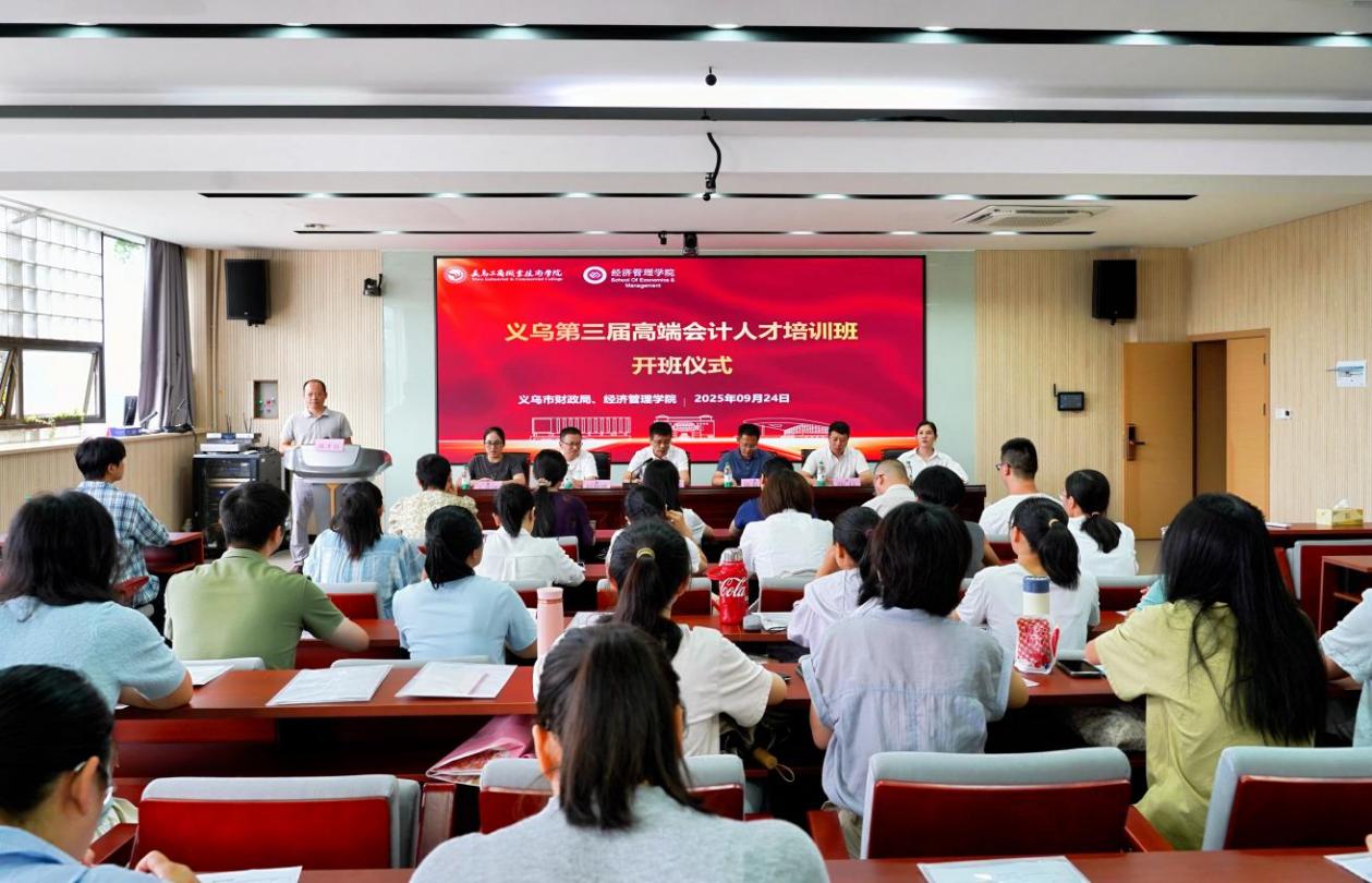 9月24日,义乌市第三届高端会计人才培训班开班仪式在我校举行。义乌市财政局党委委员、副局长吴小雁,财政局会计科科长赵顺威,必赢nn699net负责人出席仪式,并与30名参训学员共同开启赋能成长的新征程。