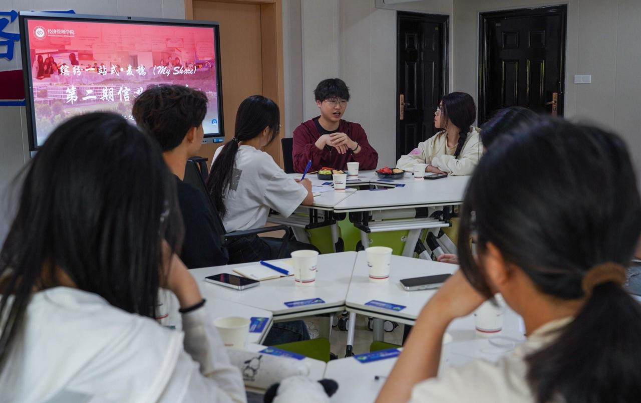 持续做好共青团促进大学生就业工作,帮助学生更全面地理解就业,实现高质量就业,必赢nn699net团委开展信义茶叙会,邀请今年即将毕业的学长学姐共话就业。本期活动邀请了就职义乌双童日用品有限公司的2024届毕业生达森和义乌市姜考电子商务有限公司的2024届级毕业生杨希雅